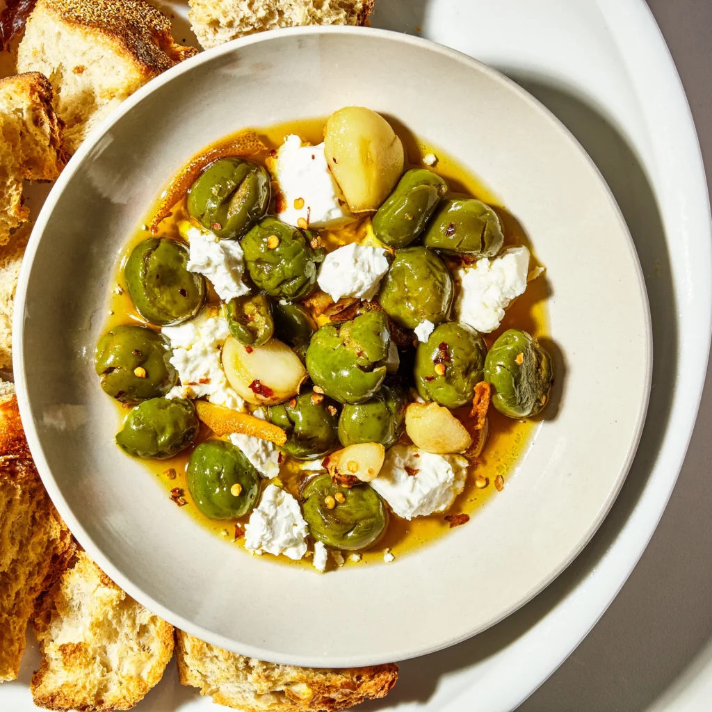 When it comes to holiday hosting, we’re always on the lookout for easy yet elegant appetizers that feel simple enough to throw together the day of. This appetizer is a go-to and is incredibly quick and elevated. The oil is flavored with red pepper flakes and garlic, paired beautifully with warm, crusty bread slices.