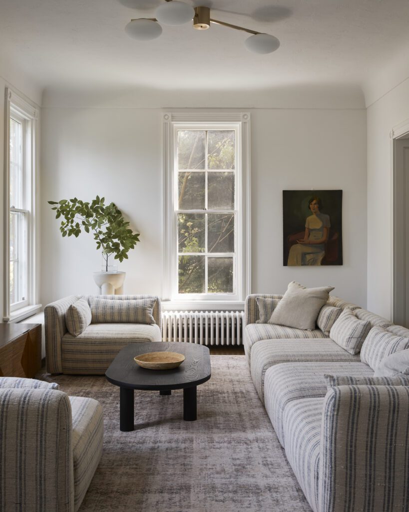 Designing for little ones was top of mind. In the family room, a modular Anthropologie sectional is built for lounging (and Lego-building), while the breakfast room’s concrete tile flooring can handle high traffic and inevitable spills.