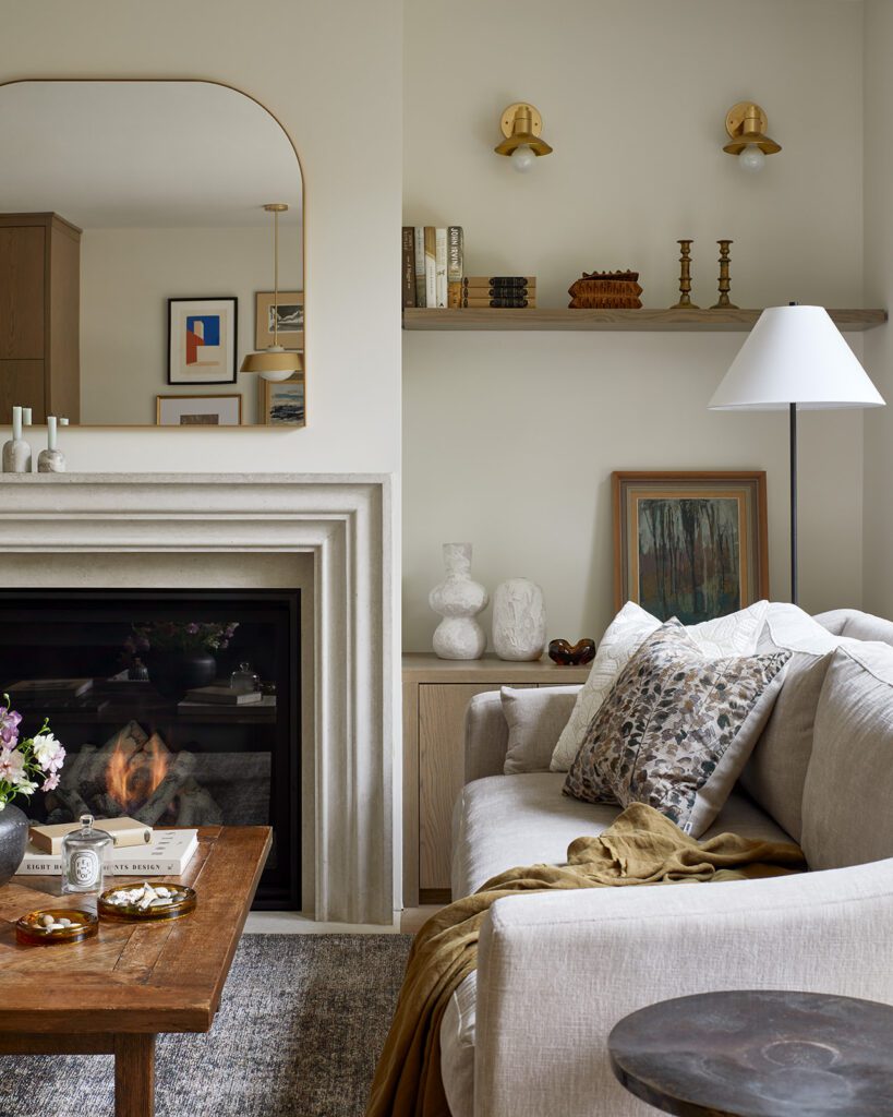 Union Lighting pendants over the island add sculptural interest, while counters and backsplash in Dekton Bergen bring texture and movement. A mix of designer-sourced furniture, artwork from local galleries like Bohnen and On the Wall Framing, and personal pieces collected along the way layer the rooms with meaning.