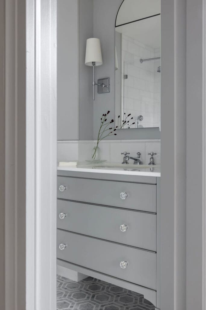The primary bathroom underwent a complete gut renovation, emerging as a clean, classic space defined by thoughtful restraint. Every finish and fixture was selected to feel quietly refined, prioritizing longevity over trend. The result is a bathroom that feels effortlessly timeless—aligned with the broader design ethos of the home.
