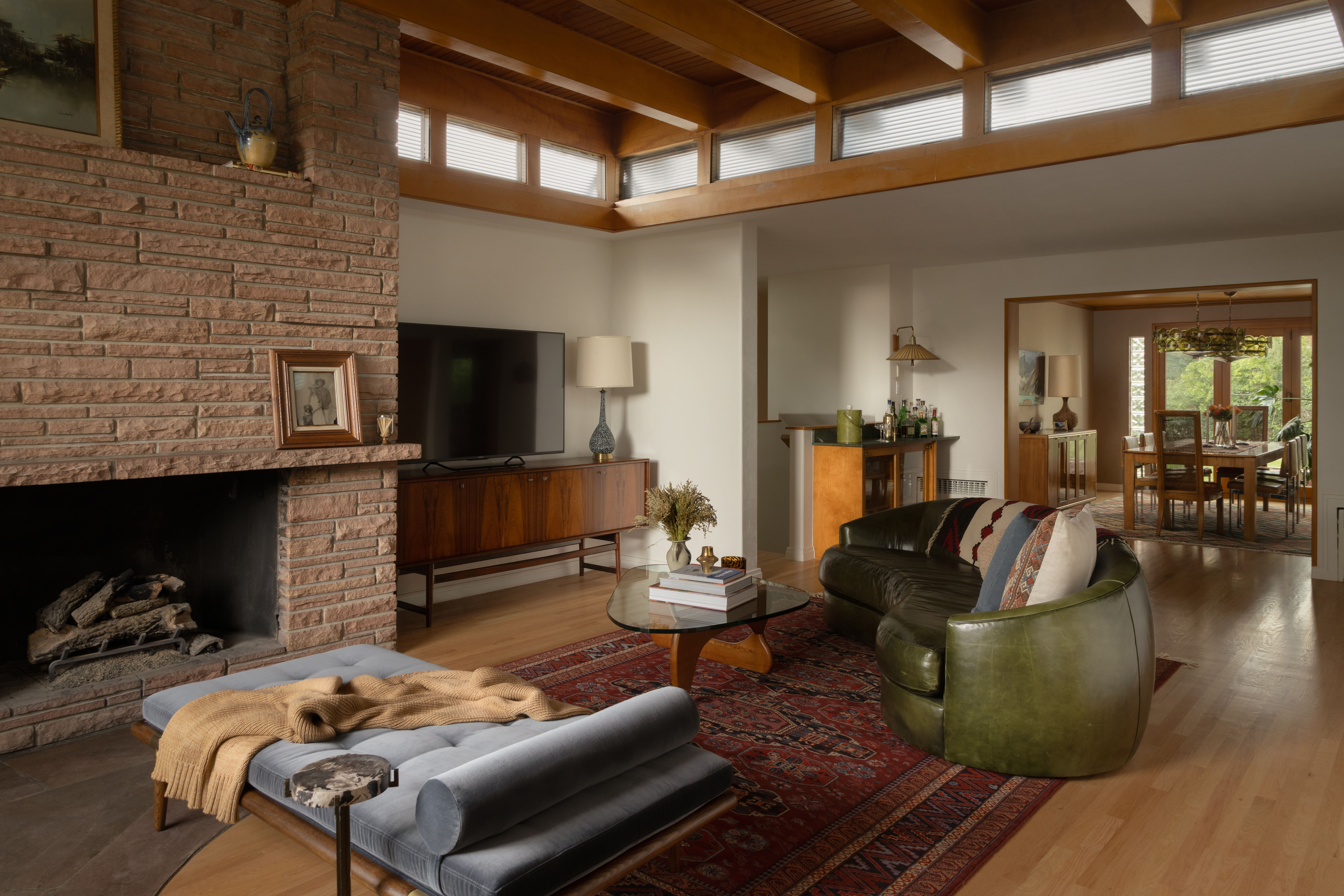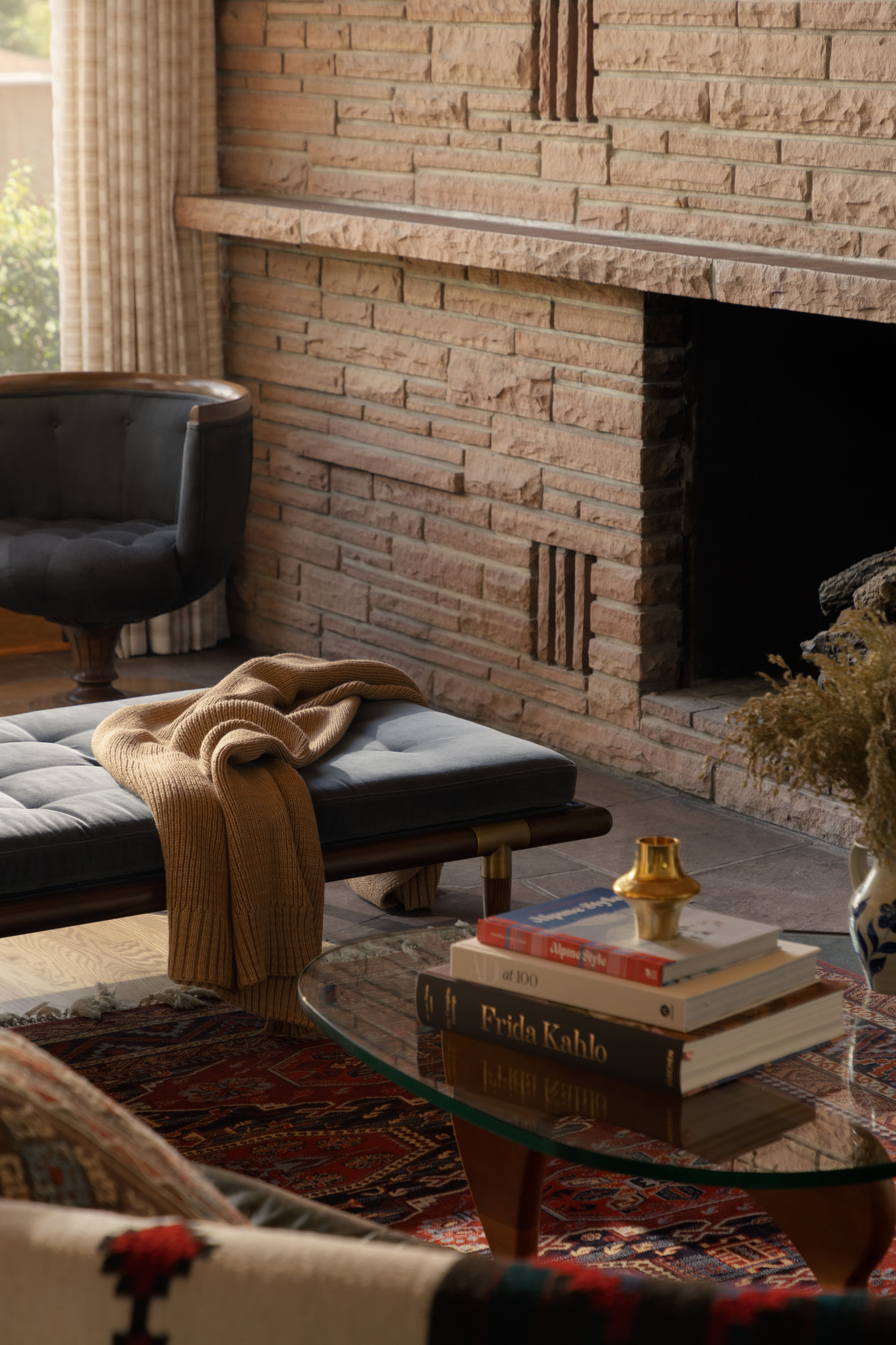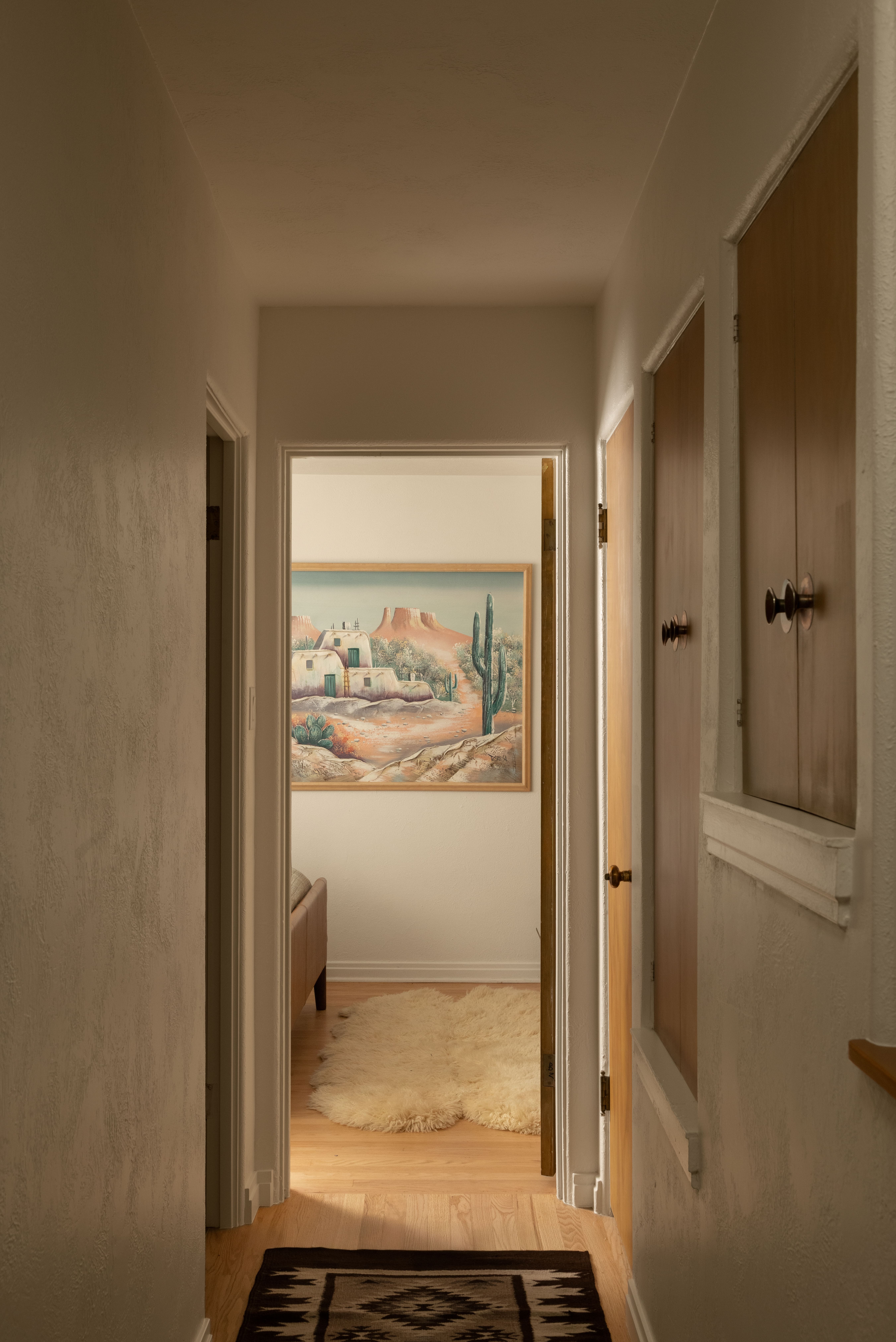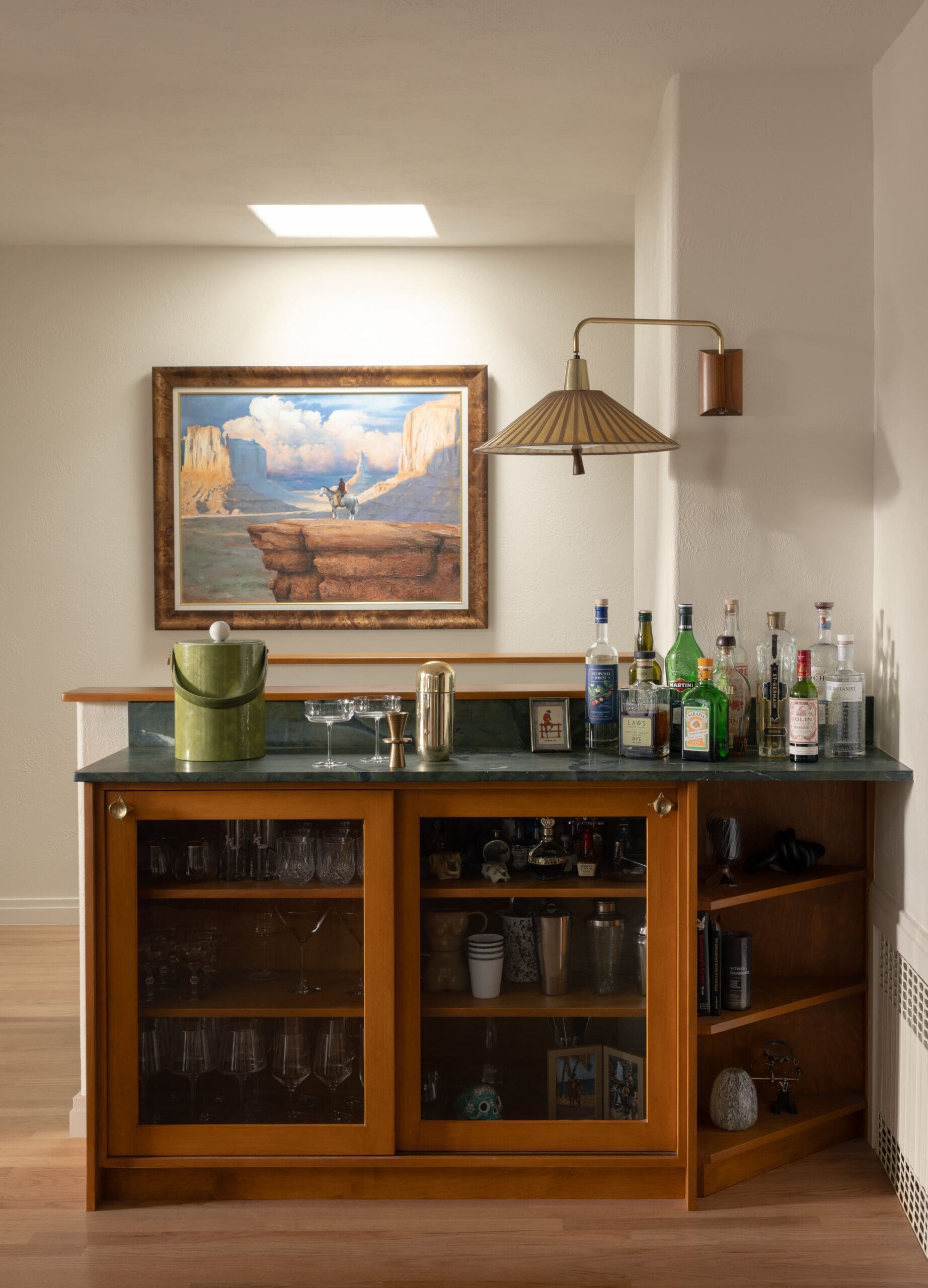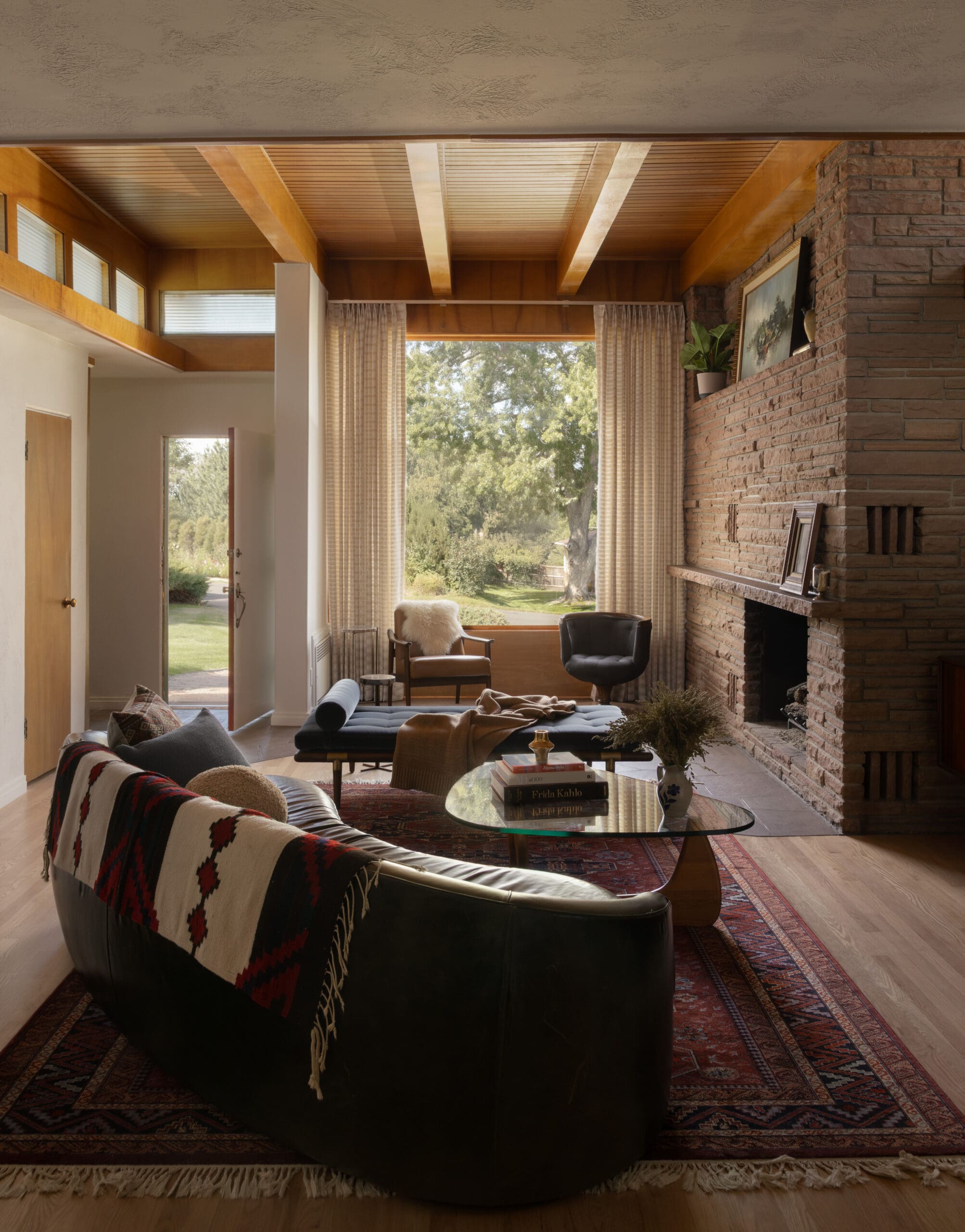 Over the course of two years, the renovation became an exercise in balance. The clients were drawn to the structure and simplicity of mid-century design, but they also wanted the home to reflect their own point of view — one shaped by western influences, meaningful objects, and a life full of experiences together. The result is what Katie describes as a “mid-century meets cowboy” sensibility: layered, grounded, and full of character without ever feeling heavy-handed.
