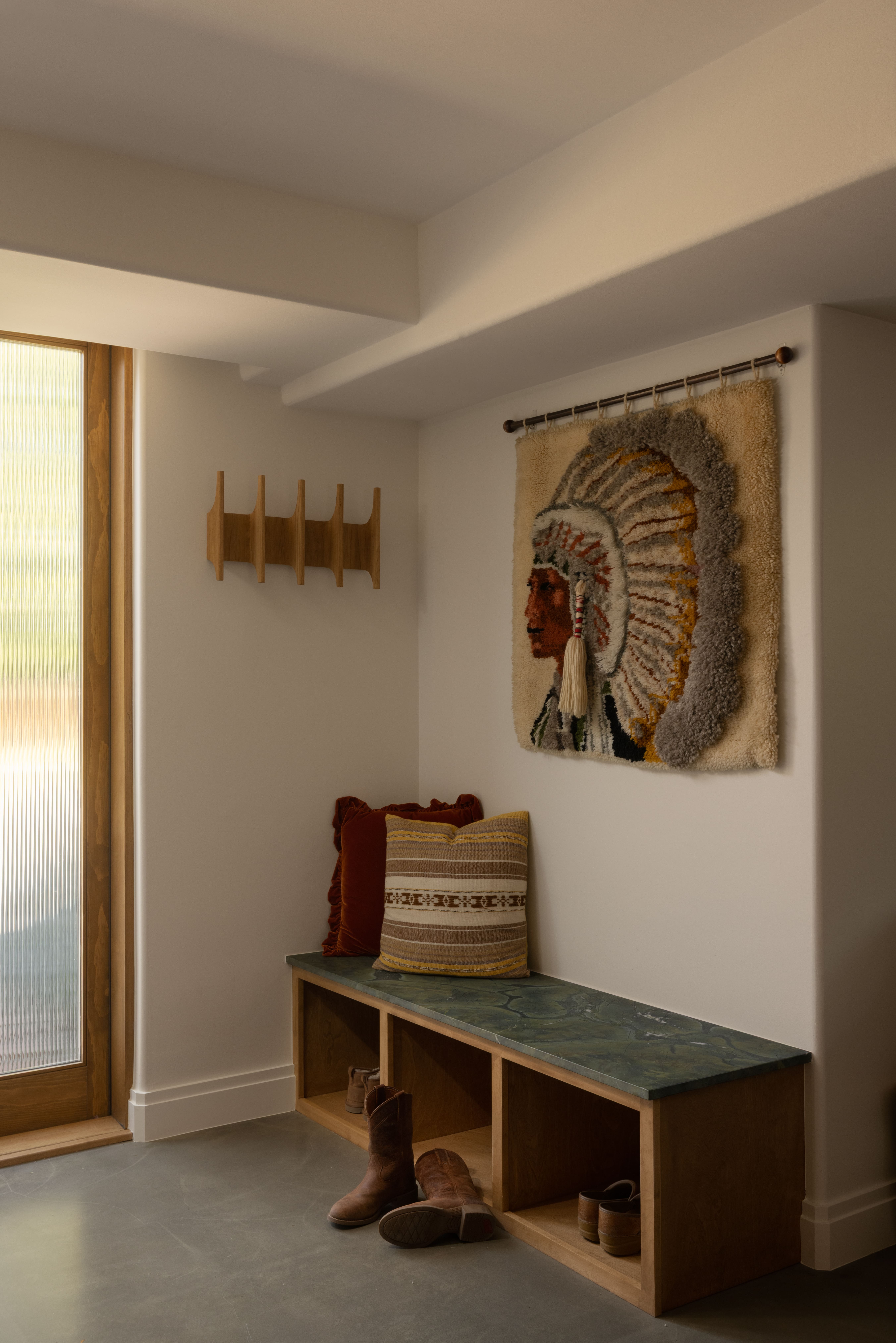 This is also where the clients’ influences come through most clearly. Their shared love of western references, travel, and storytelling through objects is present, but subtly so. Nothing feels costume-y. Instead, the room feels layered over time — exactly the kind of atmosphere that makes a house feel personal.