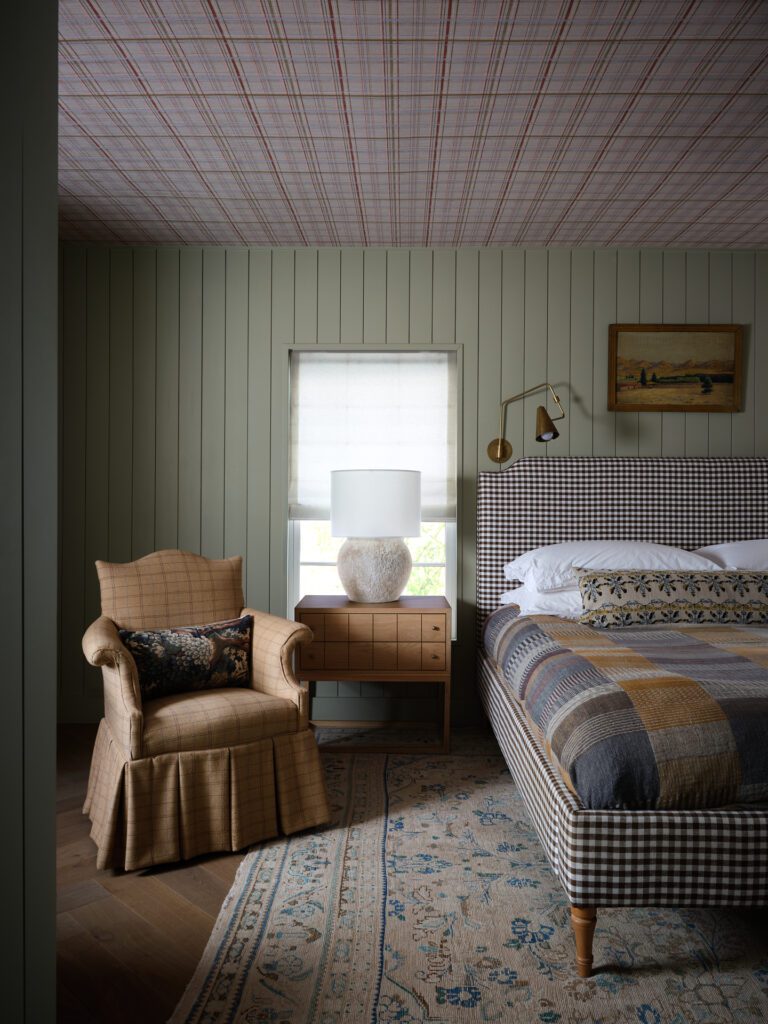 One of the best parts about our wallpaper collaboration with Chasing Paper has been adding the pieces to our home. We designed so much of this collection with historic homes like the Tudor in mind, so the selections feel like a natural fit in our spaces. Bringing the Posey Stipe wallpaper into our bathroom introduced the perfect dose of color and fun while keeping with the original design’s timeless feeling. In the primary bedroom, we couldn’t help but add Vintage Plaid to the ceiling, and we love how it draws the eye up and creates so much depth in the room.