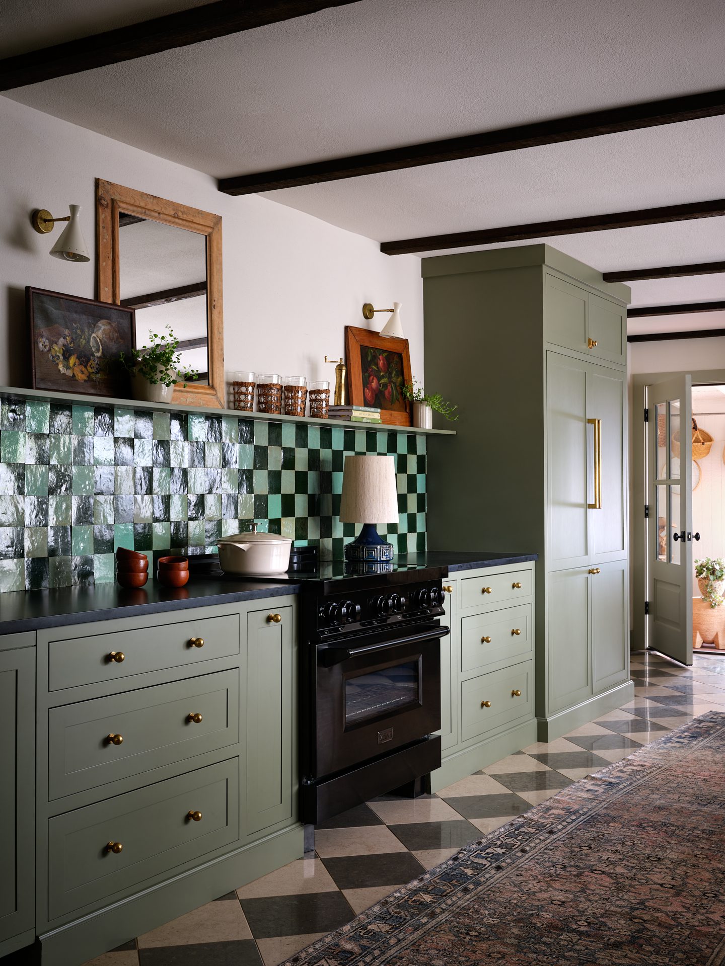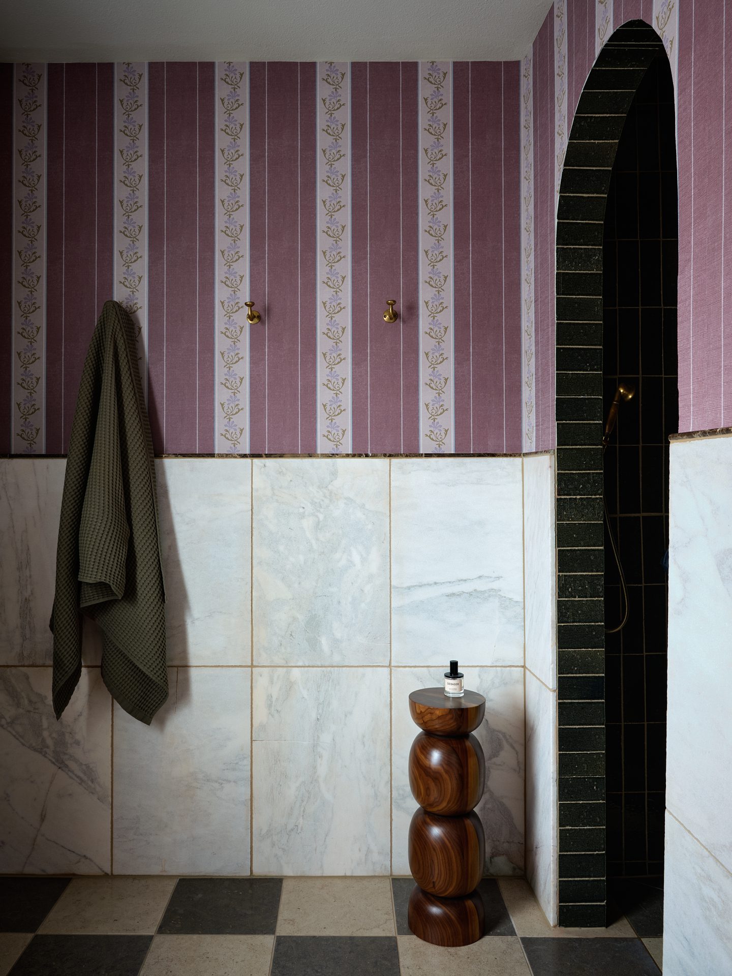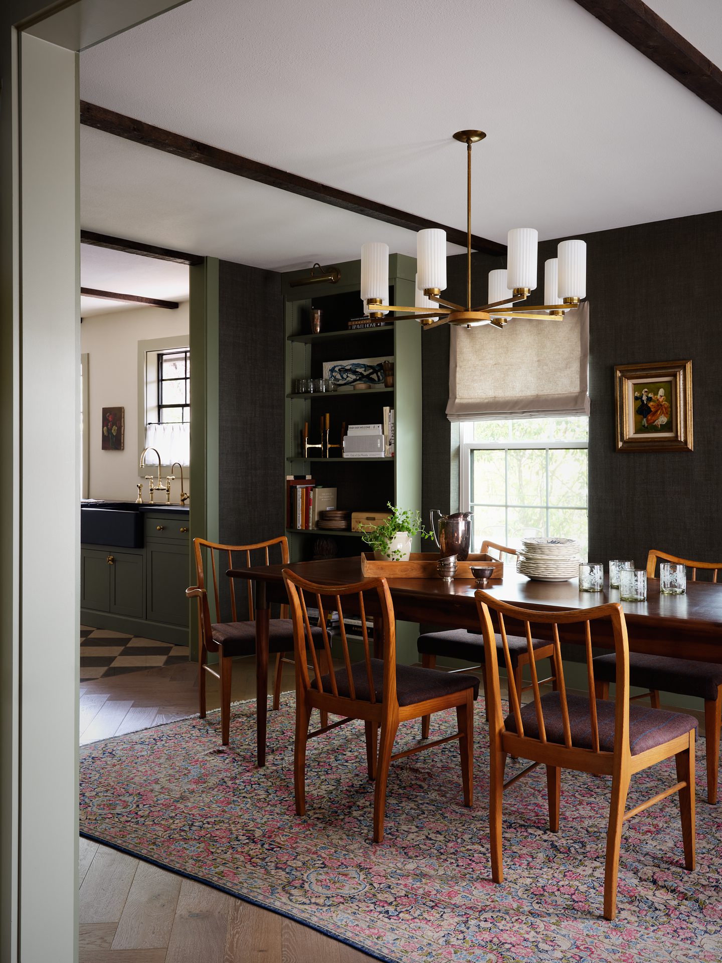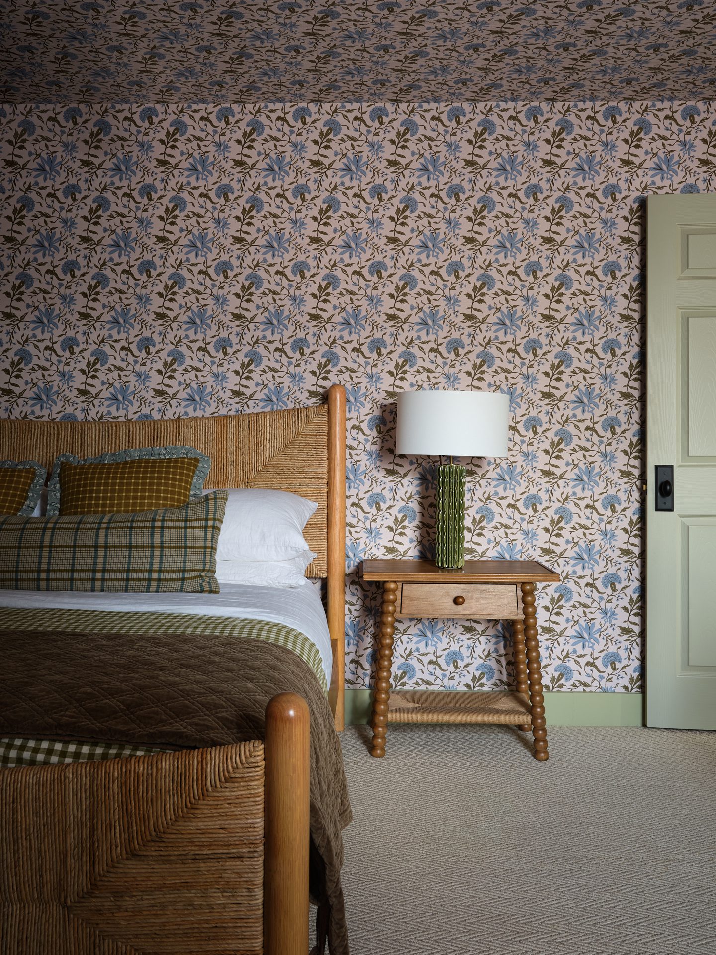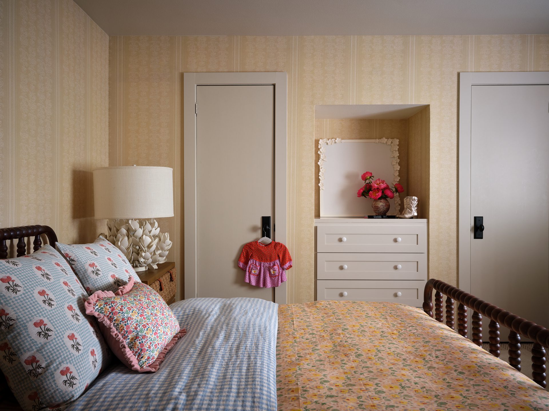 One of the best parts about our wallpaper collaboration with Chasing Paper has been adding the pieces to our home. We designed so much of this collection with historic homes like the Tudor in mind, so the selections feel like a natural fit in our spaces. Bringing the Posey Stipe wallpaper into our bathroom introduced the perfect dose of color and fun while keeping with the original design’s timeless feeling. In the primary bedroom, we couldn’t help but add Vintage Plaid to the ceiling, and we love how it draws the eye up and creates so much depth in the room.