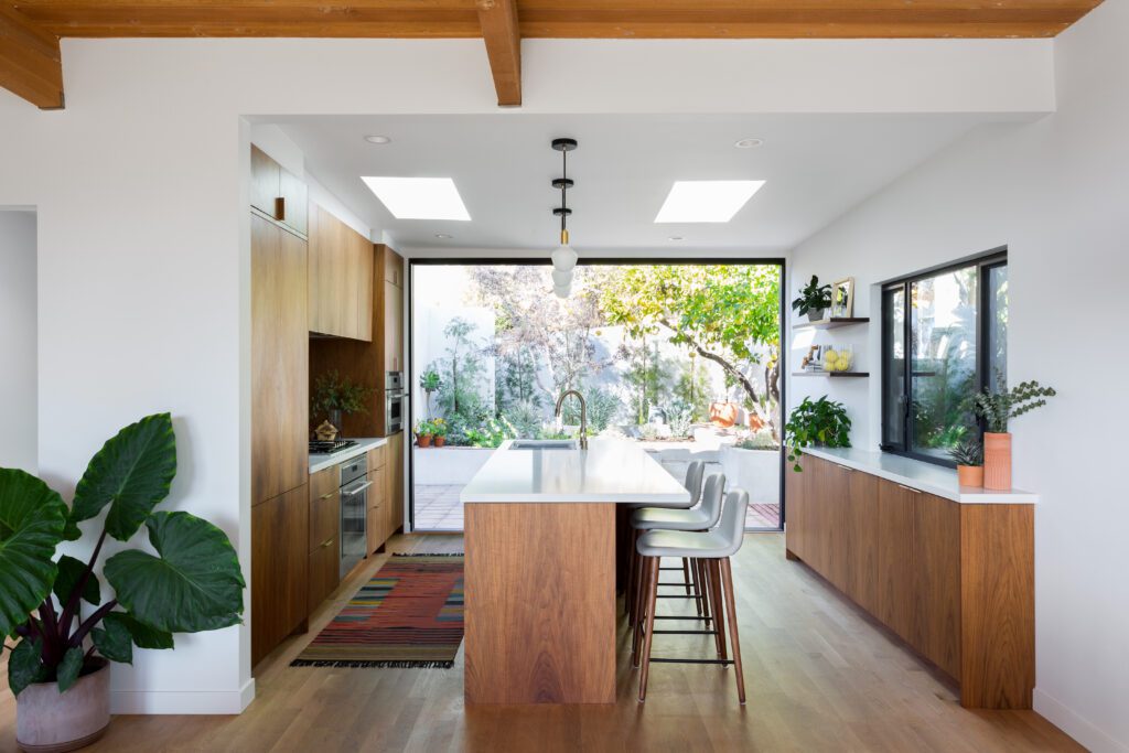 From the kitchen’s updated millwork to the new glass doors that open directly onto the patio, every detail was approached with restraint. “We wanted to bring back the home’s mid-century spirit,” says Harper. “All of the changes were made with respect for scale and budget—proving that good design doesn’t have to mean more space.”