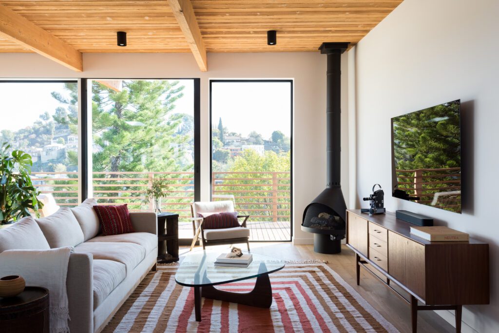 The prior remodel had left the interiors feeling closed off from the sweeping views, despite the property’s enviable perch above Silver Lake. AAHA Studio’s design approach was to reopen the home to its surroundings, using the principles of classic mid-century modernism as a guide.