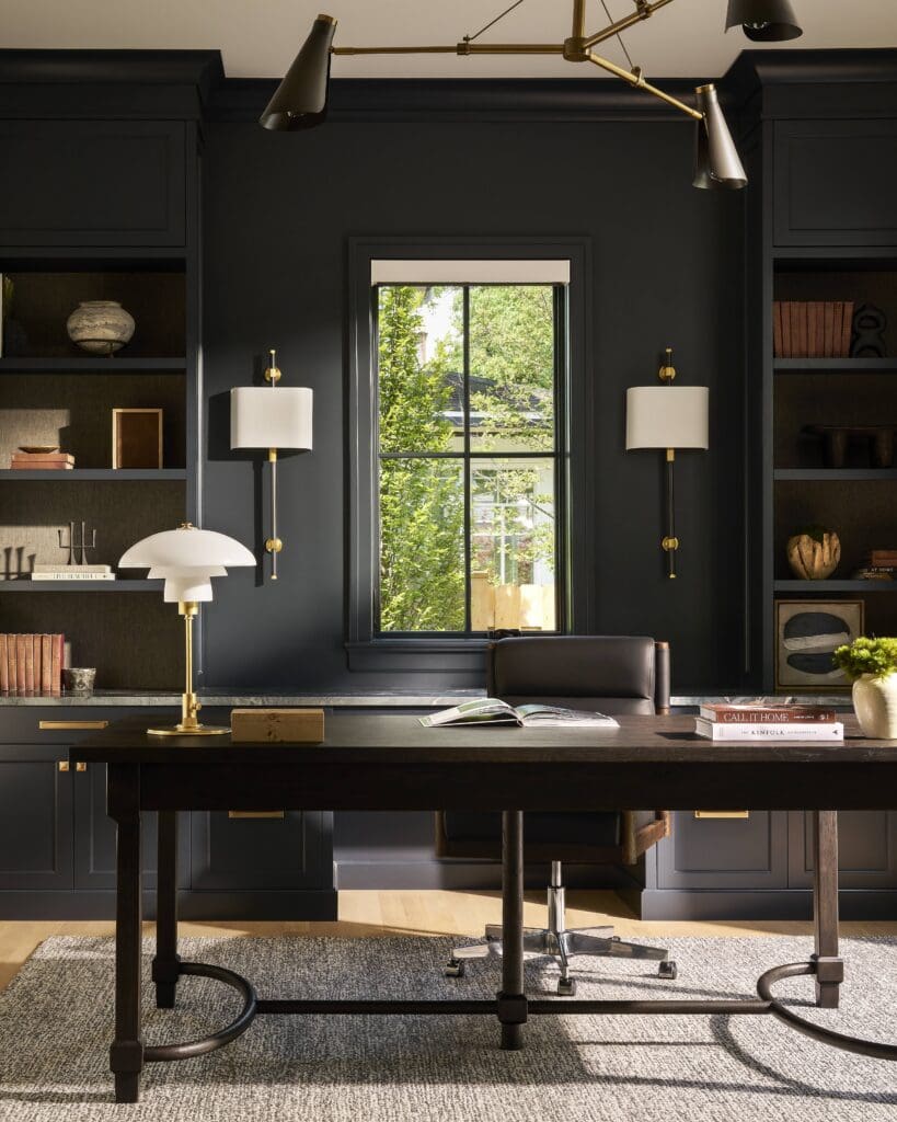 Lighting played a major role in tying everything together. Pieces like the Visual Comfort Whitman Desk Lamp bring in a tailored, classic touch, while still feeling relaxed enough for everyday living. Each fixture was selected to feel cohesive across the open-concept layout.