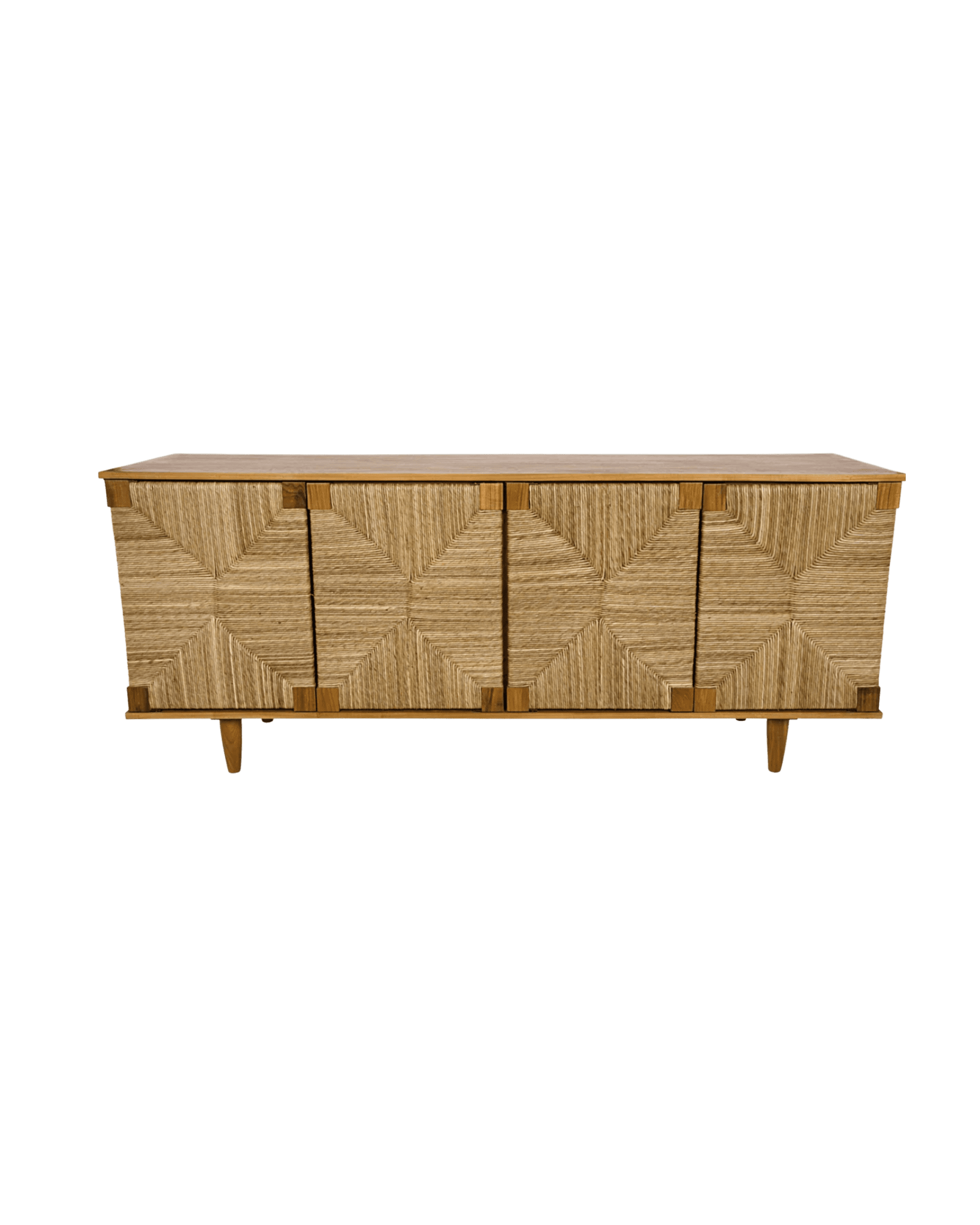Moments of contrast are introduced through grounding pieces, like the Noir Brook 4 Door Sideboard, which adds weight and structure to lighter spaces. At the same time, smaller accessories, like the burl wood box from Curated by Studio W and the Palazzo taper holders from Jayson Home, layer in warmth and a subtle sense of polish.